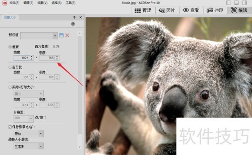 3、 在acdsee调整图片大小时,能依据图片像素修改大小,这便于我们精确调节。