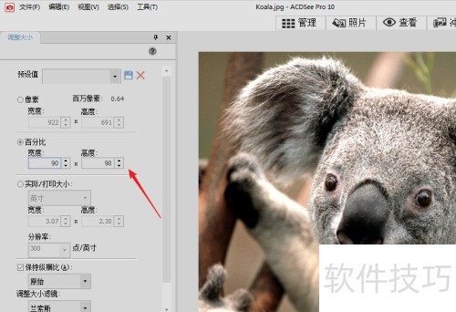 4、 在acdsee调整图片大小时,也能按百分比操作,这一点和电脑自带的画图工具颇为相似。