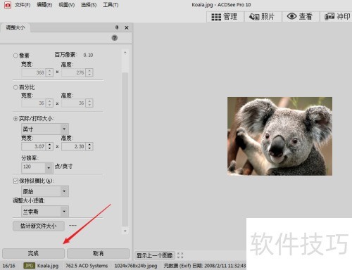 7、 已经给大家讲了acdsee改分辨率的方法,其实很简单,最后点击完成就能保存设置了。