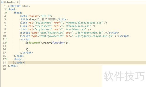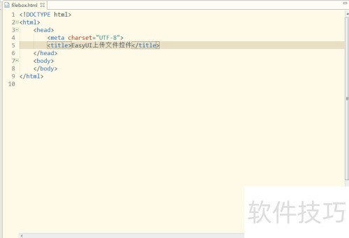 1、 首先,在构建Web项目的指定文件夹中,新建一个名为filebox.html的静态页面,然后将页面标题更改为EasyUI上传文件控件。