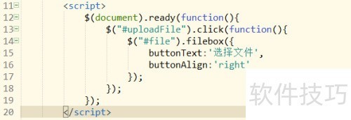 5、 第五步,于jQuery初始化函数中加入上传文件点击事件,点击后可将插件英文提示改为中文,。