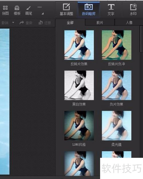 5、 点击数码暗房菜单,进入操作界面,所示。