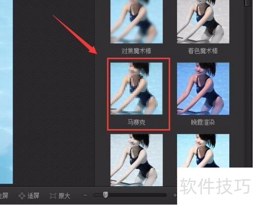 6、 在数字暗房界面中选择马赛克功能,所示。