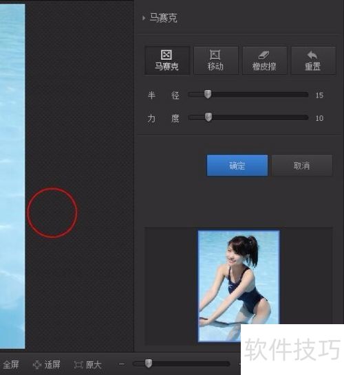 7、 点击马赛克选项,进入操作界面,鼠标会变为红色圆形,所示。