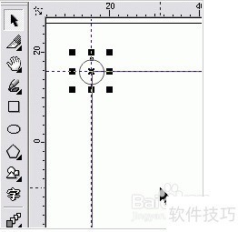 2、 绘制矩形时,让其四个角点分别与四条辅助线的交点重合。按住Shift和Ctrl键,确保圆心位于矩形左上角。