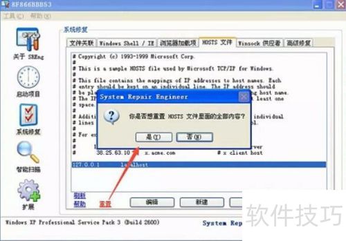 6、 要是电脑老是跳出广告,或者某些固定网站无法打开,也能试着点击HOSTS文件,再点击左下角的重置。