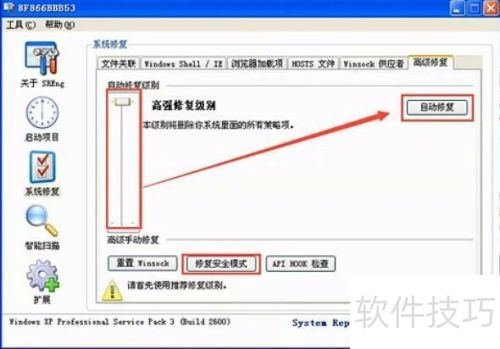 7、 有时电脑无法进入安全模式,可点击高级修复,将自动修复滚动条调至最高,选中修复安全模式后点击自动修复。