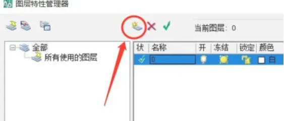 弹出窗口标题为 “图层特性管理器”,左侧显示当前图层列表。