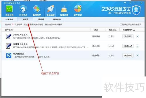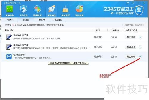 9、 若要禁止某项开机启动,只需点击图中所示按钮。