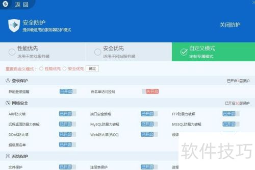 4、 性能优先模式:专为游戏服务器设计,注重运行速度,确保防护的同时不影响性能。