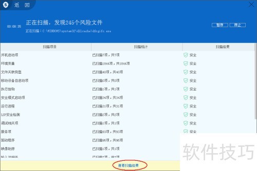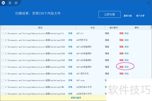 25、 扫描若检测到病毒,界面下方会显示查看结果页面。点击后可查看所有病毒文件,并根据需要对这些病毒文件进行处理。