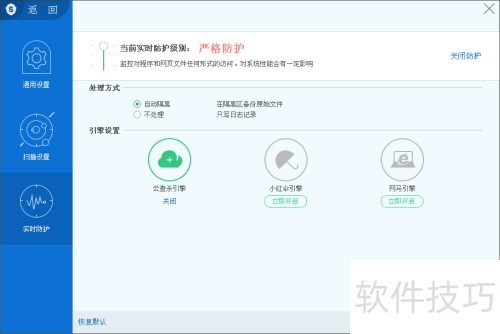 28、 主动查杀方式是指一旦发现病毒,便立刻启动查杀功能。您只需点击杀毒设置中的实时防护选项完成设置即可。