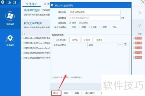 42、 文件保护功能可以防止系统中的重要文件和目录被篡改或删除,建议用户启用该功能以确保文件安全。它支持添加、删除、修改、导出、导入规则以及一键开启等操作,方便用户管理。