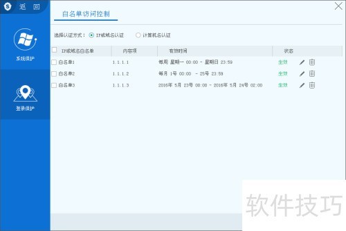 48、 白名单支持设置远程桌面的IP、域名或计算机名,可进行增、改、删及清空操作。