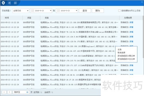 54、 系统在防御攻击后会自动生成防护日志,详细记录攻击时间、类型、源IP、地理信息、目标端口、攻击内容及处理结果等信息。用户可利用个性化日志查询功能,查看分析攻击日志,从而评估并优化系统的安全策略设置。