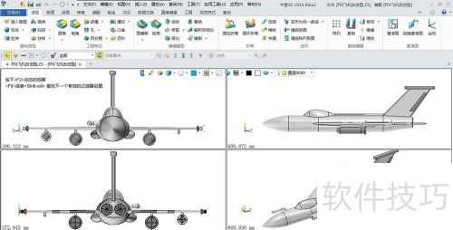 1、 中望3D能让我快速完成修改设计方案。我先构思把机头进气改成机身侧部进气,方便安装大功率对地火控雷达,再于机身右前侧加固定式加油管,以增加作战半径,所示。