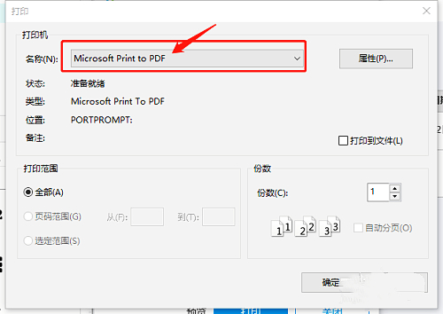 5、在打印窗口中选择“......PDF”这一选项后,点击“确定”,选择PDF文件的保存位置,保存即可。