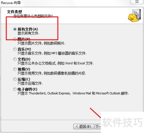 4、 根据需求选择要恢复的文件类型,此处选全部文件,然后点击下一步。