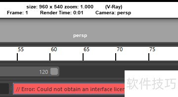 7、 ⑥在进行测试渲染的时候,出现这样的提示错误:// Error: Could not obtain an interface license (-200)!,这表明该插件注册破解失败。通常是软件与破解程序存在问题,得更换版本重新安装。