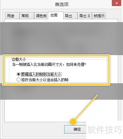 3、 选择剪辑插入帧到当前大小选项,然后点击确定按钮。