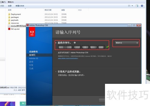 4、 接下来填写序列号,记得选择左侧语言为简体中文,设置完成后,点击下一步按钮继续操作。