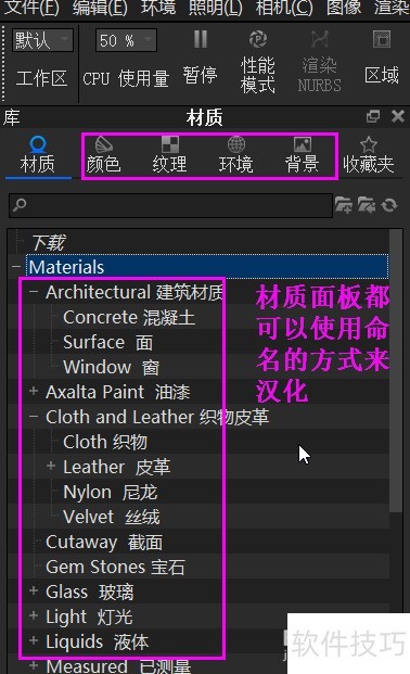 3、 修改后,所有材质名称均为中文。