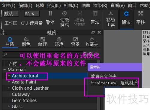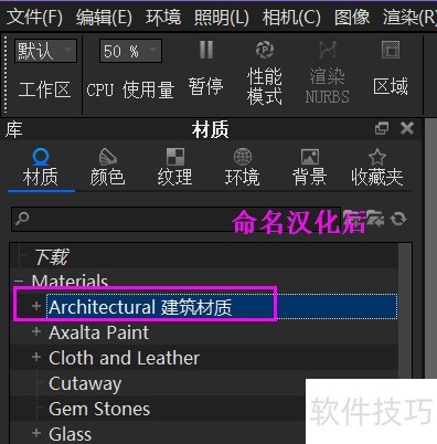 Keyshot材质面板默认英文,可采用重命名方式实现汉化。