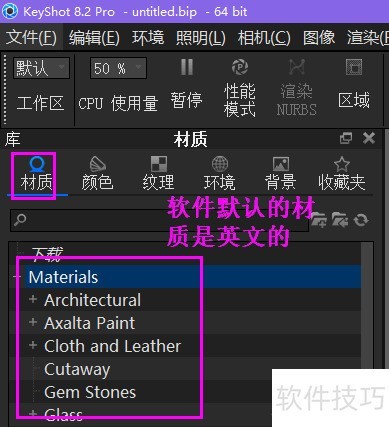 1、 启动keyshot8Pro,等候程序完成材质加载。