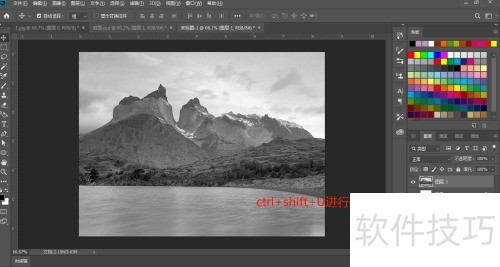 2、 快捷键:Ctrl+Shift+U可用于对照片进行去色处理,效果所示。