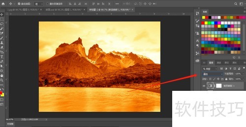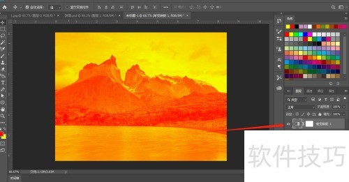5、 渐变映射后会发现,深色区域填充红色,浅色区域填充黄色,效果所示。