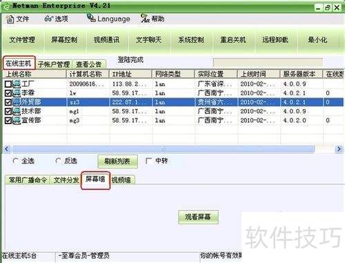 10、 复选多台计算机后点击屏幕墙,就能同时查看这些计算机屏幕。
