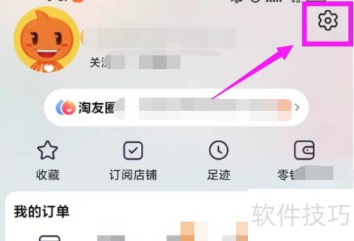2、 打开淘宝,进入我的淘宝,点击设置图标。