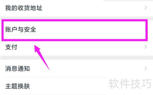 3、 进入设置后,点击账户与安全选项。