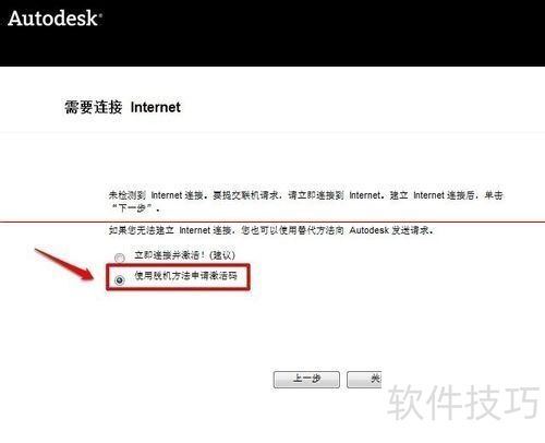 4、 选择离线申请激活码的方式,然后点击下一步继续操作。