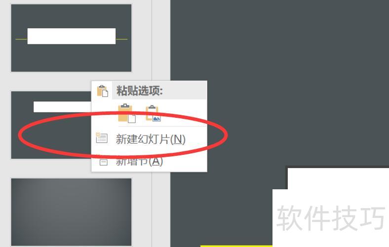 右键点击新建幻灯片选项,添加母版页面后即可应用新的母版设置。