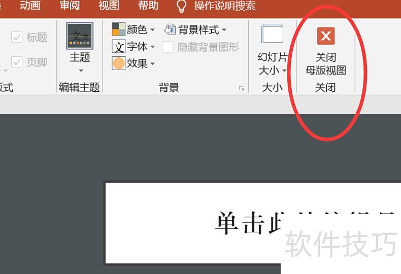 编辑母版页面后,点击关闭母版视图即可完成设置。