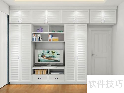 10、 为提升收纳,很多人家将柜体和电视结合成组合电视柜,大幅增加客厅储物空间,软件中也可实现定制电视柜效果。