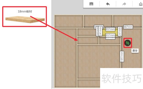 14、 创建柜子后,建议先用拆分功能完成等分空间,再用绘制板材功能自定义调整柜子空间。