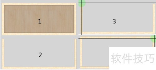 7、 快速绘制板材并拆分柜体功能,按需对柜子进行分区,拖动柜板调整各区域的长宽尺寸。