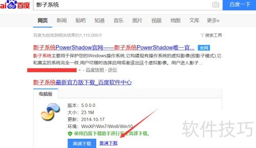 3、 输入之后,结果列表里影子系统官网排在首位,第二个是网络软件中心推荐的,点击普通下载就行。