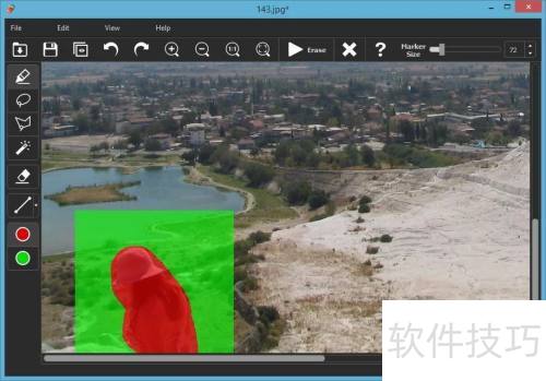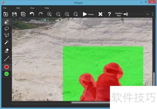 4、 如有需要,可放大到要从照片中移除的人。接着,把标记拖到欲删除的人物上即可,无需精确计算,让软件帮您处理复杂细节。