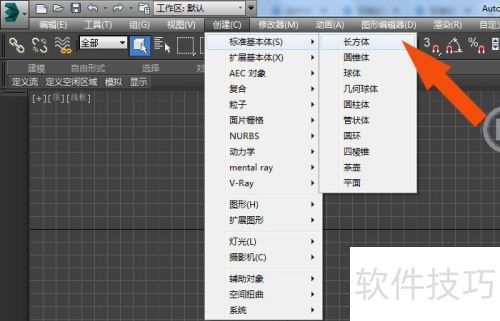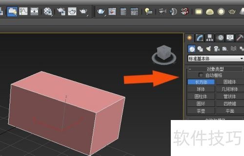 6、 接着,在3Dmax右侧模型创建面板中选择长方体,于绘图区创建,所示。