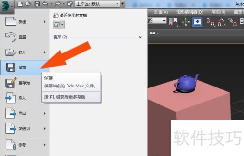 14、 左键点击菜单中的选项,所示,以保存制作完成的模型文件。经过以上操作,您便掌握了3Dmax入门的基础操作方法。