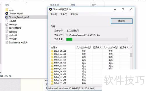 7、 我从网上下载了DirectX3.3版本的修复工具,然后用它对系统的directx进行修复。在修复时发现系统确实缺失不少DirectX的.dll库文件,该程序对这些丢失文件进行了修复。