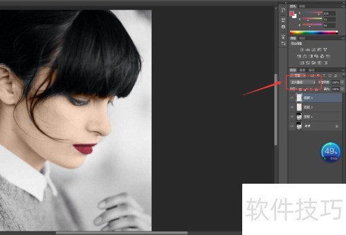 5、 新建图层,选颜色,画笔流量20左右,涂抹人物嘴唇。
