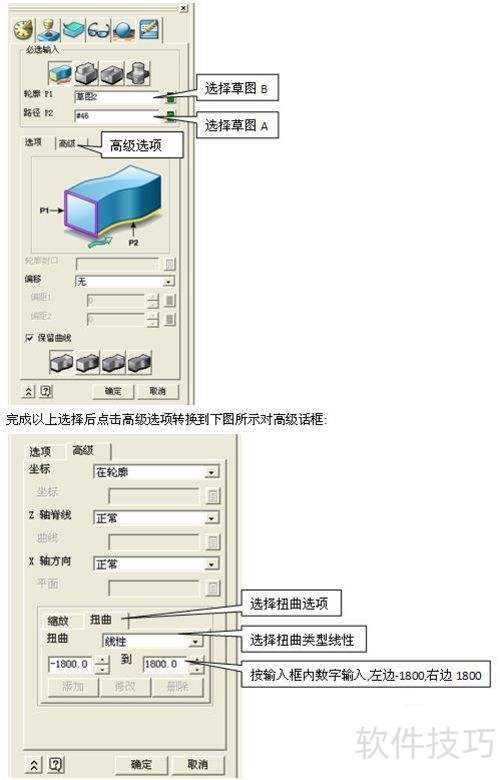 2、 使用标准扫掠功能构建圆形螺旋面: