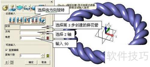 9、 使用基准扫掠功能生成一条麻花管(八所示)。