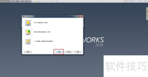 2、 新建零件:进入Solidworks界面,鼠标左键点击文件、新建、零件,再点击确定。