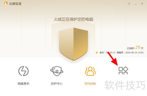 1、 电脑开机后,在桌面双击打开火绒安全软件。