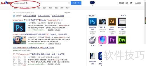 1、 先打开浏览器,在网络上搜索Photoshopcc下载,然后找出能下载Photoshopcc的资源。